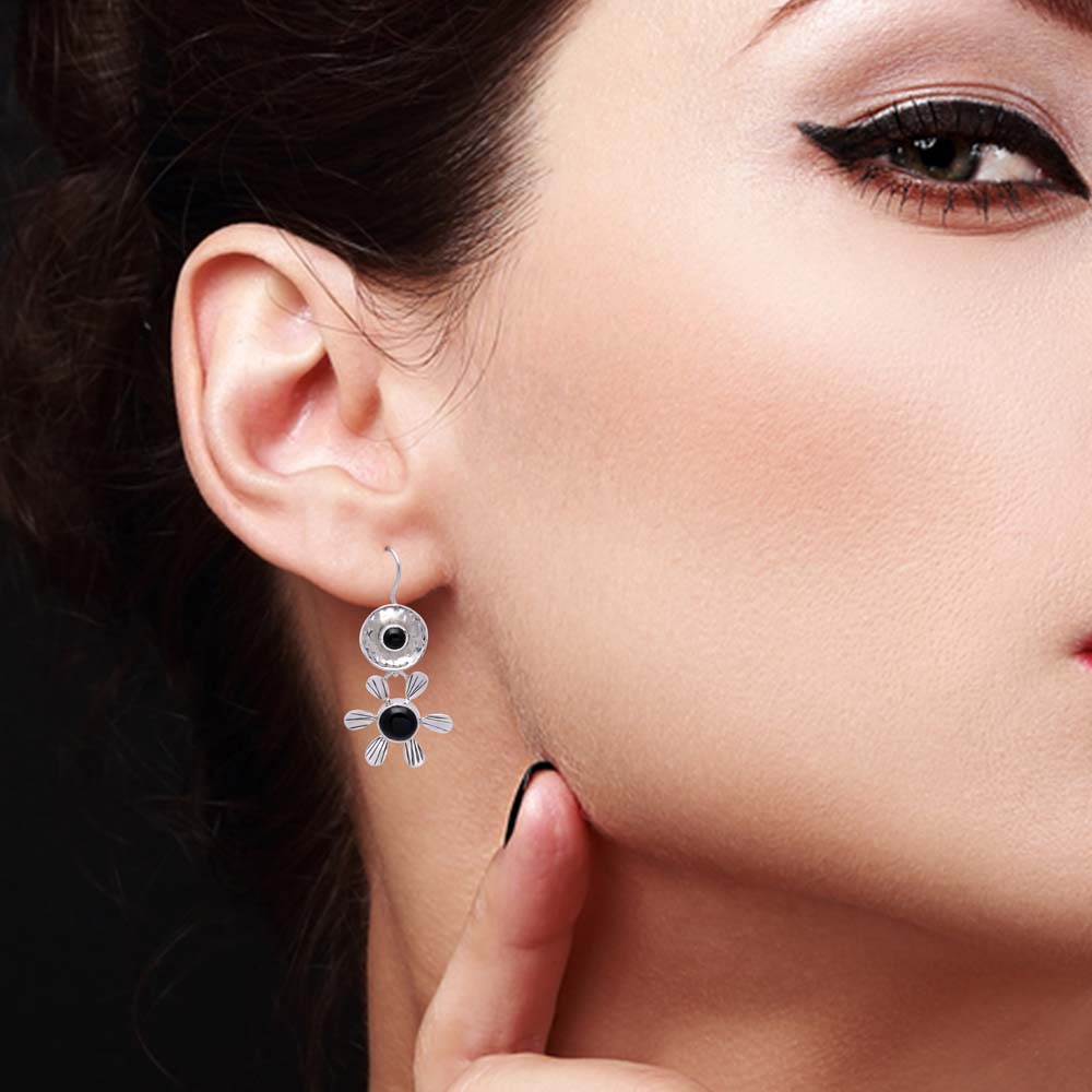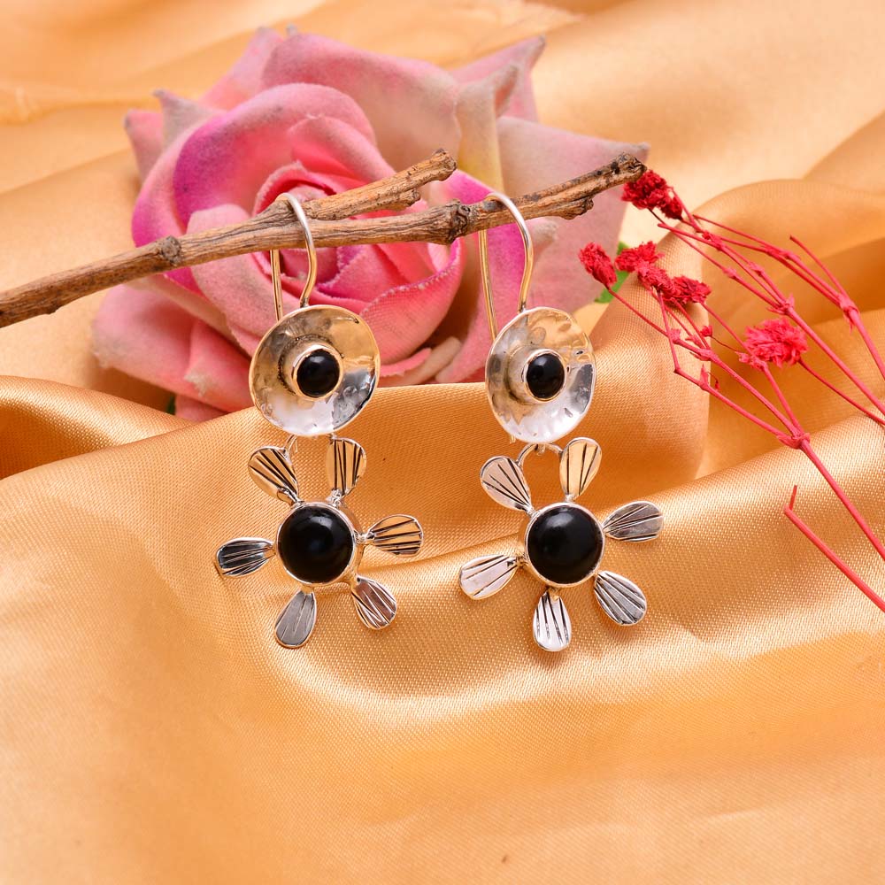 A silver earring with a sunflower carving motif coupled with black onyx gemstones would create a stunning contrast. Sunflowers symbolize warmth, happiness, and vitality,