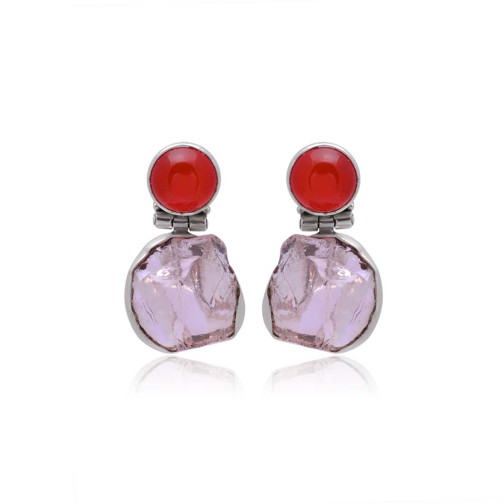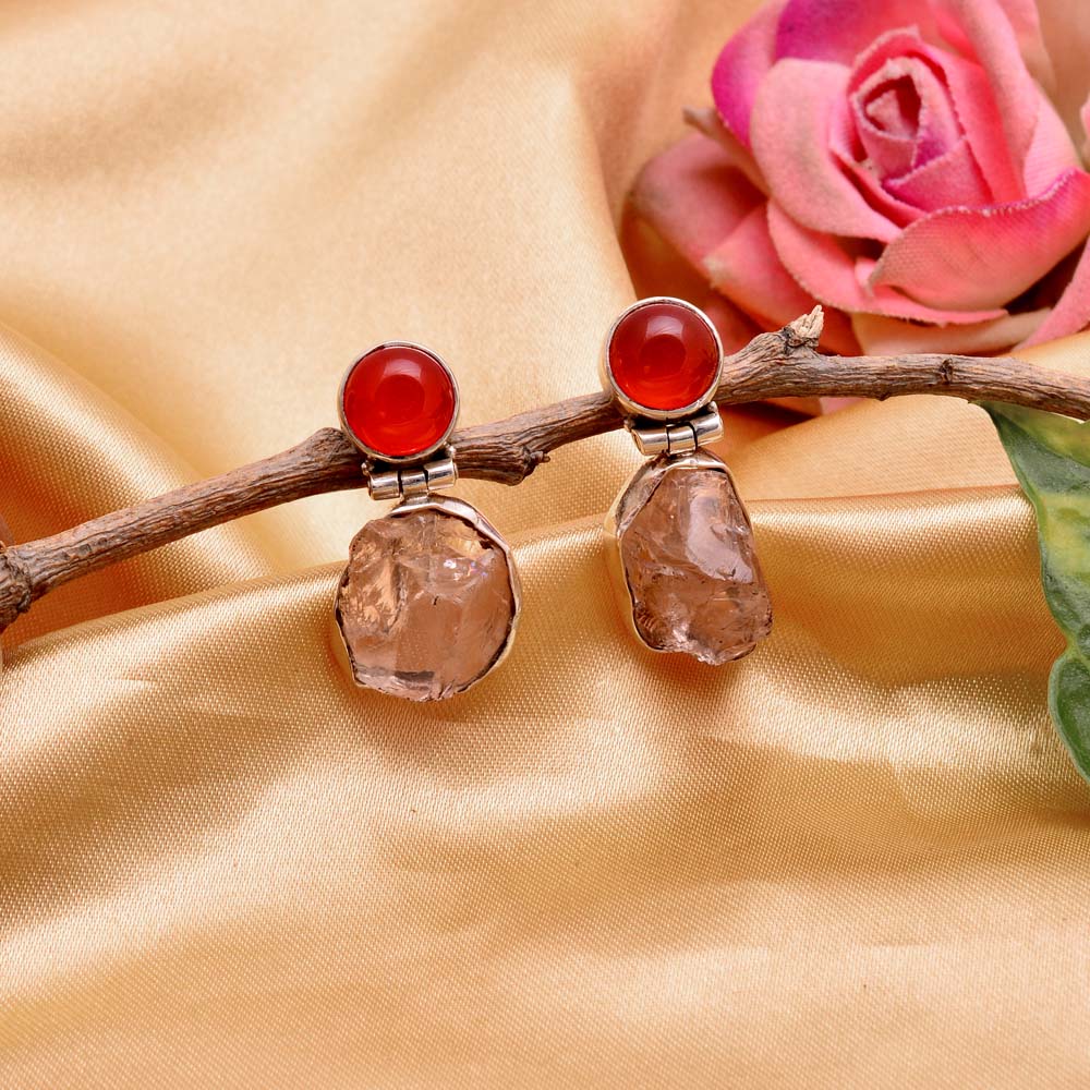 The contrast between the bold, rich color of the onyx and the gentle, feminine hue of the rose quartz could create a captivating visual effect. These earrings would likely exude elegance and sophistication, perfect for adding a touch of glamour to any outfit.