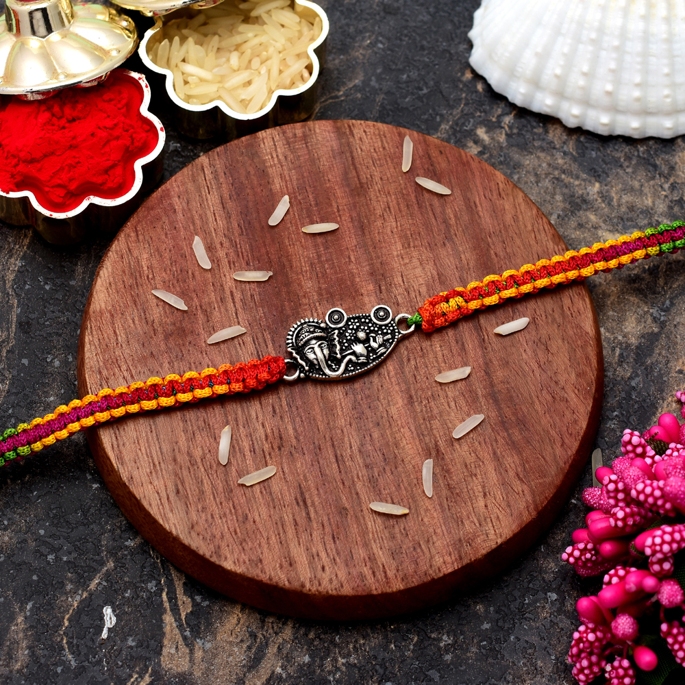The Silver Ganesha Rakhi is not just a piece of jewelry, but a sacred symbol of love and protection. In Hindu culture, Lord Ganesha is revered as the remover of obstacles and the god of wisdom and prosperity. By tying this rakhi around your brother’s wrist, you are invoking the blessings of Lord Ganesha for his well-being and success.