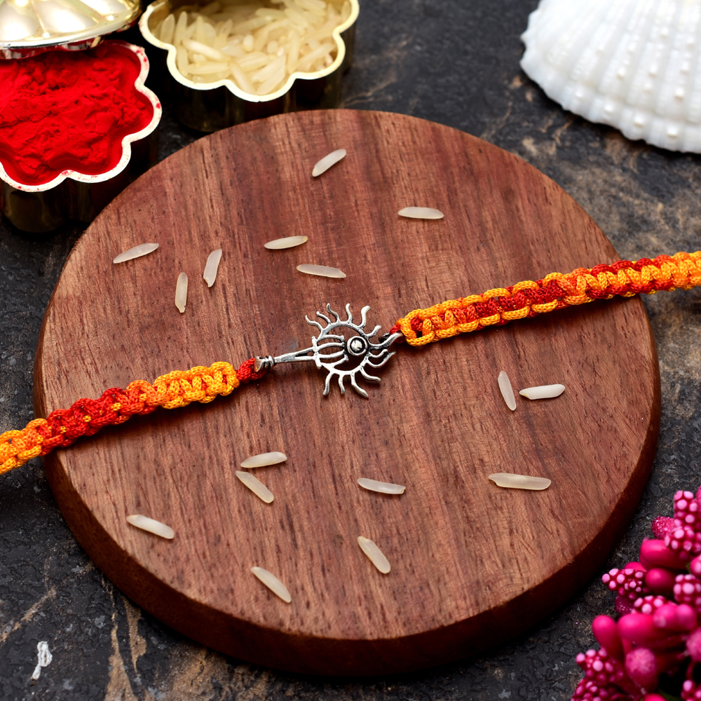 The Silver Olympic Flame Rakhi is a symbol of strength, unity, and everlasting bonds. Crafted with precision and care.The center motif can be used for making a Pendant by changing the thread.