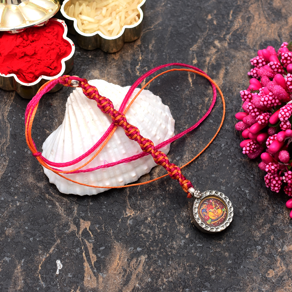 A Silver Lumba Rakhi with Photo Painting combines traditional and contemporary elements, creating a unique and personal piece.